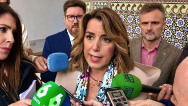 Primeras declaraciones de Susana Díaz tras conocerse la demoledora sentencia que condena a 19 de los 21 ex altos cargos de la Junta procesados por la gestión irregular de 680 millones en ayudas sociolaborales.
