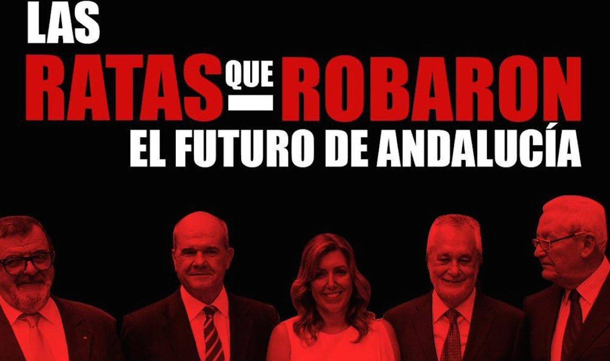 En el más controvertido de los memes aparecía la presidenta Susana Díaz flanqueada por los expresidentes Manuel Chaves, José Antonio Griñán, José Rodríguez de la Borbolla y Rafael Escuredo coronados por la leyenda ‘Las ratas que robaron el futuro de Andalucía’.