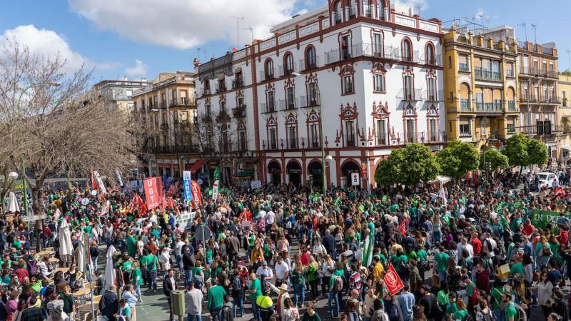 Al mediodía tuvo lugar en Sevilla una concentración de docentes ante las puertas del Palacio de San Telmo, sede de la Presidencia de la Junta, y para esta tarde hay convocada otra, también en la capital, que se espera multitudinaria.
