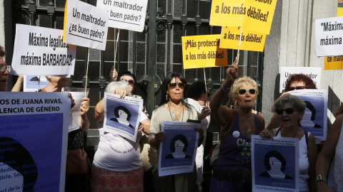 Juana Rivas, la madre granadina en paradero desconocido desde hace veinte días, sobre la que pesa una orden de detención por incuplir la orden de entregar a sus hijos al padre -condenado por malos tratos-, ha remitido una carta a las plataformas que se han concentrado este lunes en su apoyo. En ella dice dice que está huida, pero que no está haciendo "nada fuera de la ley". Representantes de las plataformas que han convocado la concentración ante los juzgados ha leído la misiva. La concentración ha reunido a un centenar de personas.