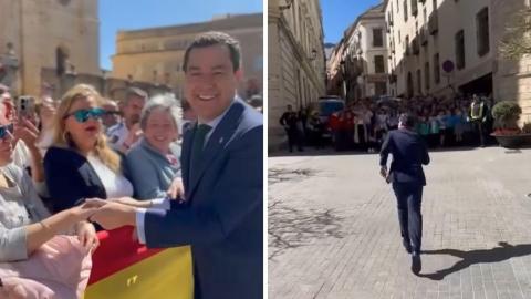 Esta vez, las imágenes que ha compartido el presidente en Jaén dejan poco lugar a duda. Aprovechando el inexplicable fervor que aún despiertan las visitas de sus majestades los reyes -Borbones, no magos- de España a diferentes ciudades, el presidente andaluz ha vuelto a sorprender con una actitud que no sabemos si impostada, pero al menos sorprendente y no apta para vergonzosos ajenos. El vídeo del presidente andaluz es puro Juanma Moreno: artificio, preparación, todo medido. Sabían que era un público favorable, conservador. Que el ambiente era 'festivo'. No solo era la visita de los reyes sino su motivo: celebrar la capitalidad de Jaén. El público estaba entregado; y a él se entregó Juanma. Fotos por aquí, autógrafos para allá, besos... una auténtica estrella de rock. Que no es por verlo todo con las gafas de la crítica; es pudor. Y, sobre todo, decencia política. El momento en el que Moreno Bonilla es grabado de espaldas corriendo a saludar a unos enloquecidos fans un poco más alejados de todo el jaleo es sin duda el mejor de todo el vídeo. Recuerda a ese único futbolista que en las concentraciones de su equipo es el único que se para a firmar fotos; a Nadal en Roland Garrós, a Marc Márquez en Jerez. Pero no, era Moreno Bonilla en Jaén. Y en un acto, por supuesto, totalmente impostado.