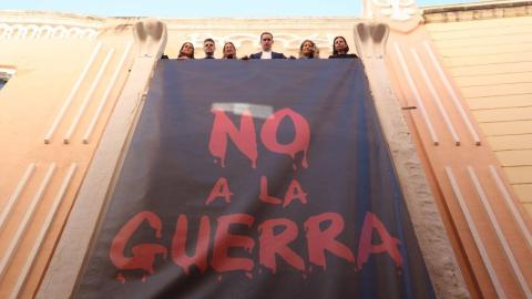 El despliegue de la pancarta ha tenido lugar en la mañana de este miércoles, presentando un cartel con un diseño nada barroco y que va directo al grano: "No a la guerra" se puede leer en grandes dimensiones. En este sentido, Latorre ha señalado que con este acto simbólico el PSOE quería manifestar su oposición a una guerra de la que ha asegurado "que no respeta el Derecho Internacional y que genera muerte, destrucción y dolor entre la población civil”. Así, remarcaba que desde el PSOE “por supuesto” también se condena a un régimen iraní que no respeta los derechos humanos, pero, ante las víctimas y las consecuencias que está trayendo consigo, indicaba que los conflictos “no pueden resolverse a base de bombas y misiles”.