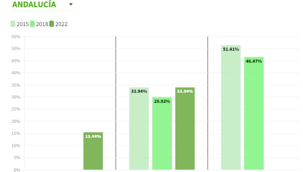 Por provincias, Córdoba y Jaén han sido los territorios en los que el aumento ha sido más notorio, con un 7,25 y 6,95, mientras que Almería y Huelva han sido las que menos, con un 1,83 y un 2,91.
