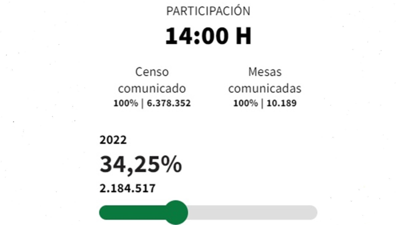 Si la participación en las elecciones andaluzas hasta las 11.30 horas ha sido del 15,44%, 985.053 personas, el porcentaje a las 14.30 asciende al 34,25%, 2.184.517 electores, lo que implica unos cuatro puntos más que en 2018 (4,31%).