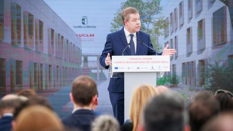 El presidente de Castilla-La Mancha, Emiliano García-Page, ha defendido este lunes la apuesta por la inversión pública en la región durante el acto de arranque de las obras del Campus Biosanitario de la Universidad de Castilla-La Mancha en Ciudad Real, un proyecto estratégico ligado al entorno hospitalario, con una inversión de 38,2 millones de euros y más de 19.000 metros cuadrados, que albergará seis edificios interconectados y unificará las facultades de Medicina y Enfermería.