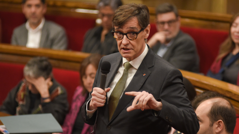 En la sesión de control celebrada este miércoles en el Parlament de Cataluña, el presidente de la Generalitat, Salvador Illa, ha decidido plantar cara a la extrema derecha. Ante las interpelaciones del secretario general y líder del grupo parlamentario de Vox, Ignacio Garriga, y la dirigente de Aliança Catalana, Sílvia Orriols, en las que una vez más han atacado a la inmigración, el jefe del Ejecutivo catalán ha acusado a ambos políticos de ultraderecha de ser “los representantes de Donald Trump en Cataluña”. “Ahora se pelearán por ver quién es más trumpista”, ha señalado.