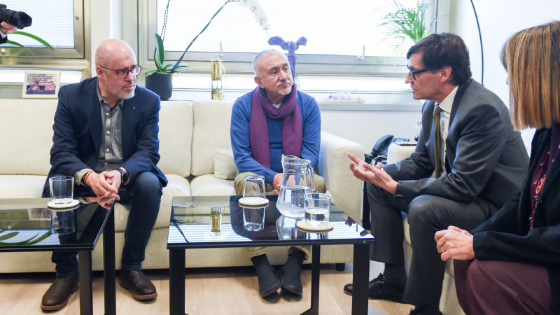 El presidente de la Generalitat de Cataluña, Salvador Illa, ha mantenido este miércoles un encuentro en Madrid tanto con el secretario general de la Unión General de Trabajadores (UGT), Pepe Álvarez, como con el de Comisiones Obreras (CCOO), Unai Sordo. En la reunión, calificada por Illa de “fructífera y positiva”, ambos dirigentes sindicales han mostrado al jefe del Ejecutivo catalán su apoyo al nuevo modelo de financiación que supone 21.000 millones de euros adicionales para el conjunto de las comunidades autónomas y 4.700 millones para el territorio catalán. Unos recursos que, según Illa, servirán para reforzar la cohesión social mediante la mejora de los servicios públicos