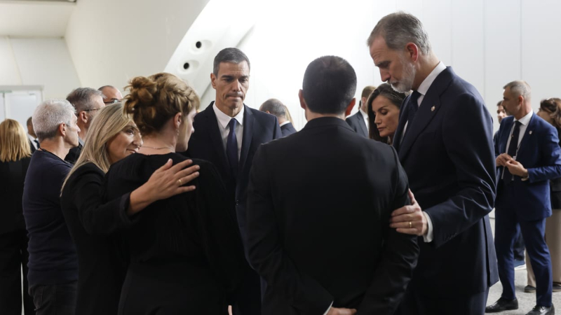 Pese a ello y a razón de la última desfachatez de Mazón, los reyes Felipe VI y Letizia, quienes presiden el funeral de Estado, junto con el presidente del Gobierno, Pedro Sánchez, han mantenido un encuentro en solitario con representantes de los familiares de las víctimas en la sala contigua del Museo de les Ciencias Príncipe Felipe minutos antes de que diera inicio el funeral. Tal y como informaban fuentes del Gobierno en la mañana de este miércoles, desde ahí, con la ausencia de Mazón, los Reyes y el jefe del Ejecutivo han podido reunirse personalmente con algunos de los familiares de las víctimas, algo que ya sucedió en la visita de estos a Paiporta el pasado 3 de noviembre, y en el funeral religioso que se celebró en la Catedral de Valencia el pasado 9 de diciembre.