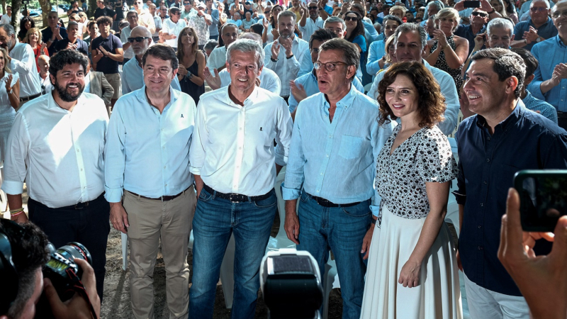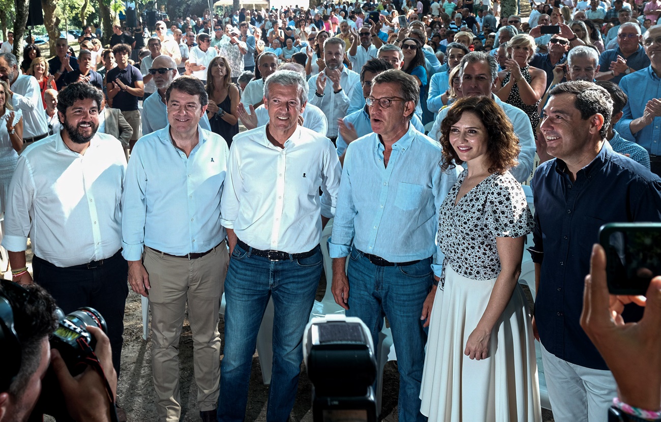 Como buen pupilo y bajo la atenta mirada de quien hace pocos meses le nombró, el presidente de la Xunta y presidente del PPdeG, Alfonso Rueda, ha presumido con orgullo de la "magnífica sanidad pública" con la que cuenta Galicia, tanto en el.ámbito hospitalario como en Atención Primaria. Lo ha hecho durante su intervención en el acto de inicio del curso político que su formación ha celebrado un año más en Cerdedo-Cotobade, donde Rueda ha estado rodeado, además de por el líder nacional de los populares, Alberto Núñez Feijóo, por otros pesos pesados de la formación como Isabel Díaz Ayuso, Alfonso Fernández Mañueco, Fernando López Miras o Juanma Moreno Bonilla.