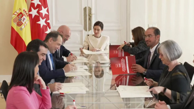 El acuerdo rubricado en la Puerta del Sol sitúa el nuevo modelo de financiación plurianual de las universidades, que recibirán 14.800 millones de euros de la Comunidad de Madrid hasta 2031. El 83% de esa cantidad provendrá de las arcas públicas de la región, y contempla 549 millones más en el último año. Ahora es el turno de las seis universidades de desarrollar una "planificación estratégica y plurianual". El Ejecutivo regional estima que cada centro contará con unos 2.400 millones de euros anuales.