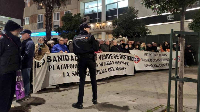 Tras conocer que la dirigente popular estaría en Coslada, decenas de vecinos de San Fernando se trasladaron hasta allí cacerola, voz y pancarta en mano para poner de manifiesto una vez más su situación, convocados por la Plataforma de Afectados por Metro y luciendo lemas que rezaban "indemnizaciones dignas para poder recuperar nuestras vidas", "una casa por mi casa" o "Metro hace aguas, nuestras casas se hunden".