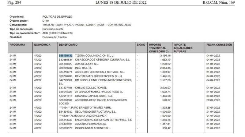 A esta compleja estructura, se suman cuestiones como las denunciadas recientemente por el experto digital Marcelino Madrigal, que ha cuestionado en sus redes sociales a qué se debe la subvención que la Comunidad de Madrid concedió en el 2022 a Tizona Comunicación SL. Concretamente, las ayudas económicas que recibiría la sociedad mercantil, sin empleados desde 2021, ascenderían más de 3.000 euros por trimestre.