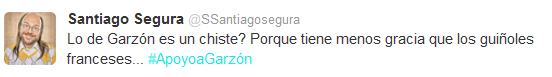 La mayoría de los usuarios de Twitter que han participado en el hashtag #apoyoaGarzon han mostrado su repulsa por la sentencia y señalan paradojas como que Francisco Camps haya sido absuelto o que Garzón sea el primer condenado por el caso Gürtel.