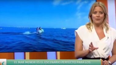 Nazaret Navarro conectaba en directo con el programa Murcia Conecta, desde San Pedro del Pinatar subida a una moto actuática, cuando, de manera inesperada, cayó al agua.
