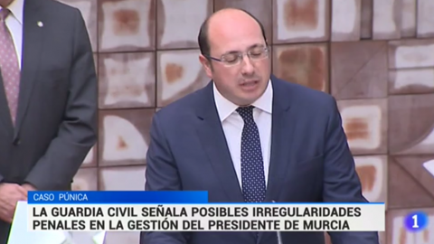 La cobertura que se iba a dar a ambas noticias en los telediarios era previsible. Pero no deja de resultar escandalosa. En el telediario de las 15 horas, el caso de la investigación judicial sobre el Presidente de Murcia se resolvió en poco más de 30 segundos. En el de la noche, no llegaba a un minuto. Pero es que además, ese ‘aumento’ de tiempo se dedicó a… ¡incluir una declaración de un portavoz popular!