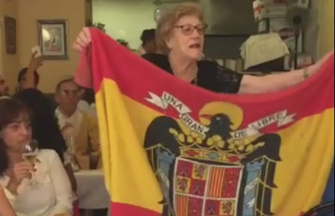 No te pierdas el vídeo del momento. El 'Cara al Sol' entonado por Doña Olga en su marisquería de La Guardia (Pontevedra) y animado por una bandera franquista. Tal exaltación del régimen de Franco no la veíamos desde que la señora Franquista revindicara una "España arriba".