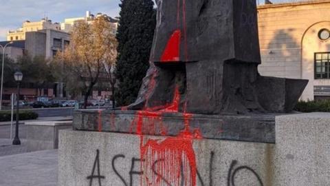 La estatua del expresidente del PSOE y ministro de la II República española Indalecio Prieto, y del expresidente del Gobierno republicano Francisco Largo Caballero, situadas en Nuevos Ministerios, Madrid, volvió a amanecer ayer domingo con pintura roja y la palabra 'Asesino'.