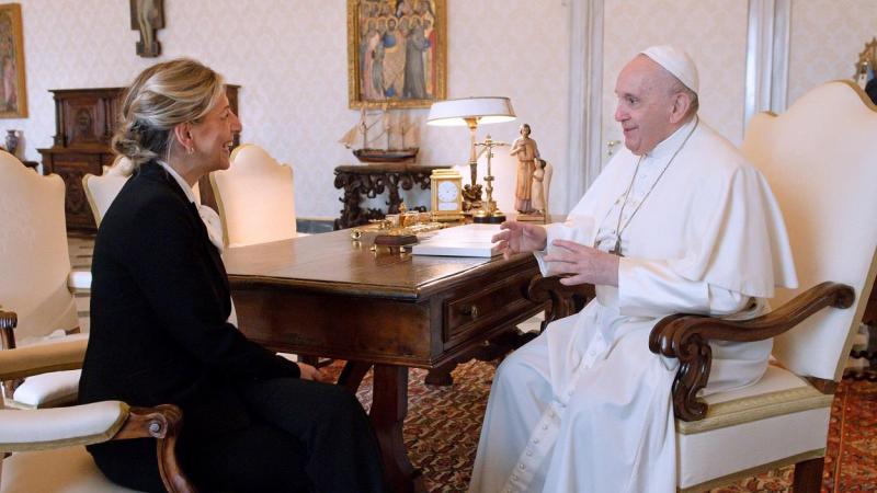La vicepresidenta segunda y ministra de Trabajo, Yolanda Díaz, ha conversado con el Papa Francisco sobre los decretos legislativos que ha emprendido España para paliar la crisis y el concepto de trabajo como agente social que da dignidad y aporta igualdad, según han informado fuentes del Gobierno español.