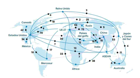 La creciente polarización geopolítica lleva a los países a redefinir sus alianzas energéticas y a buscar proveedores más fiables. Un claro ejemplo es la prohibición de importar gas ruso en la UE desde 2027, junto con la firma de más de 180 acuerdos energéticos desde 2022.