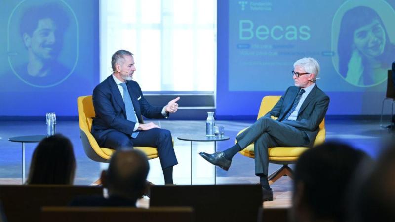 El presidente ejecutivo de Telefónica, Marc Murtra, y el presidente de Fundación Telefónica, Enrique Goñi, presentaron este miércoles un programa pionero de 50 becas anuales, dotadas con un máximo de hasta 80.000 euros cada una, dirigidas a estudiantes de máster y doctorado para especializarse en áreas tecnológicas clave como inteligencia artificial, machine learning, ciencia de datos y ciberseguridad, física aplicada y tecnologías cuánticas, entre otras.