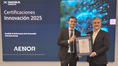 Además de esta certificación internacional, Indra Group ha renovado recientemente la certificación UNE 166006, obtenida por primera vez en 2023 y considerada una norma de referencia en España en vigilancia e inteligencia para la gestión de la I+D+i. Este reconocimiento avala la capacidad del grupo para anticiparse a los cambios del entorno, identificar oportunidades y mitigar riesgos, así como para detectar líneas de mejora, impulsar nuevas ideas y proyectos innovadores, establecer alianzas estratégicas y anticipar tendencias que marcarán la evolución futura de la compañía y de los sectores en los que opera.