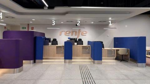 El nuevo espacio se ha diseñado siguiendo los estándares actuales de la empresa, con una propuesta enfocada en elevar la calidad de la atención al cliente y transmitir una imagen más moderna, accesible y funcional. El mobiliario ha sido pensado para garantizar el máximo confort de los usuarios e incluye un muro tecnológico multipantalla que ofrece información en tiempo real sobre turnos de atención, horarios ferroviarios y contenidos comerciales de Renfe.