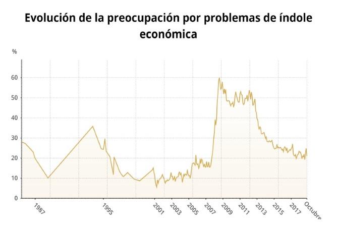 Si los ingresos no llegan a subir a los niveles de 2008, los niveles de preocupación tampoco bajan a los de época anterior a la crisis. La preocupación por los asuntos de índole económica se mantiene y los españoles consideran que su situación económica, siendo "regular", no ha experimentado variaciones con respecto al año pasado, ni prevén que éstas se den de aquí al año que viene.