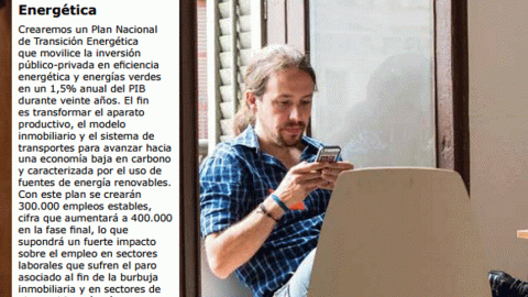 Si tuviéramos que escoger una sola imagen para representar la noticia política del día, hay que reconocer que este miércoles sería una tarea arduamente complicada. Hoy no hay una imagen, hay todo un catálogo digno a analizar en el que Podemos ha querido plasmar su programa para las elecciones del 26J.