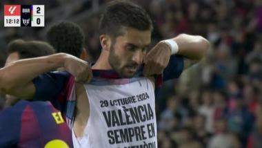 Después de que el delantero azulgrana empujara el balón hacía la red de la puerta ilicitana, gracias al robo y la asistencia facilitada por Fermín, durante su celebración, ha alzado su camiseta y rendido homenaje a todas las víctimas de la DANA a apenas unos días del aniversario. “29 Octubre 2024, Valencia siempre en la memoria”, mostraba el mensaje que Torres guardaba bajo su equipación.