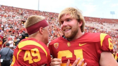 Olson ingresó a USC con una beca Swim With Mike, destinada a atletas con discapacidades físicas. Aunque no jugó en sus primeros dos años universitarios, su persistencia finalmente dio resultado. El 2 de septiembre de 2017, durante un partido contra Western Michigan, llegó su gran momento.