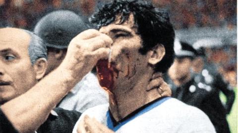 Uno de los episodios más recordados fue el sufrido por Néstor Combín, delantero del Milan, argentino nacionalizado francés. El atacante terminó ensangrentado y con un ojo hinchado después de recibir un brutal codazo de Ramón Aguirre Suárez, una de las acciones más salvajes de aquella final. La escena se convirtió en una de las imágenes icónicas del partido y en el símbolo más evidente de que el choque había cruzado todos los límites posibles.