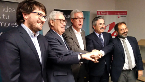 Inauguración del crowdworking de Telefónica Open Future en Tarragona, una iniciativa que cuenta con el respaldo del Ayuntamiento de la ciudad. En el centro, el alcalde de Tarragona, Josep Félix Ballesteros entre Luis Solana (izda.) y Kim Faura (dcha) (Foto: elplural.com)