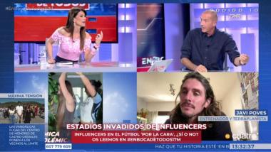 Abad presentaba a Poves, ya un habitual de su espacio, con un aviso a navegantes: "Viene preparado para dar collejas". El presentador le preguntaba al respecto: "¿A ti qué te parece que las influencers empiecen tiki tiki y se pongan a comentar el fútbol como si fuesen grandes expertas cuando en realidad se están riendo de la gente a la que le gusta el fútbol?".