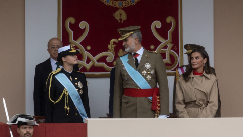 La lluvia este 12 de octubre ha marcado los actos militares para celebrar la Fiesta Nacional, tanto que ha obligado a cancelar los desfiles aéreos de la Patrulla Águila y el salto paracaidista. Esta lluvia también ha afectado a los reyes, Felipe VI y Letizia, y a la princesa Leonor, que presidían el desfile militar. Es así como ha llamado la atención un gesto de la reina Letizia, que no ha pasado desapercibido y que la periodista experta en Casa Real, Pilar Eyre, no ha dudado en valorar a través de las redes sociales.