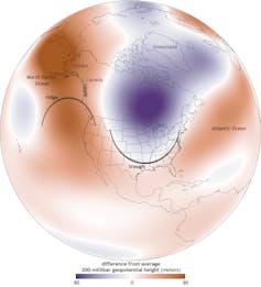 La existencia del chorro polar, principal responsable de la meteorología en estas latitudes, se debe al gradiente térmico norte-sur. Debido a que el Ártico se está calentando más rápidamente, el chorro polar pierde intensidad y forma “meandros” más pronunciados (igual que un río al perder velocidad su corriente).
