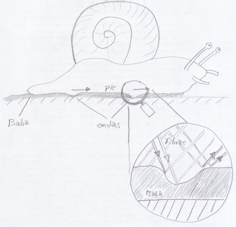 Si el caracol solo se desplazara por el suelo, estos movimientos serían suficientes para propulsarle. Sin embargo, su afición a estar boca abajo y a trepar hace necesaria la baba, el pegamento con el que se adhiere a todo tipo de superficies.