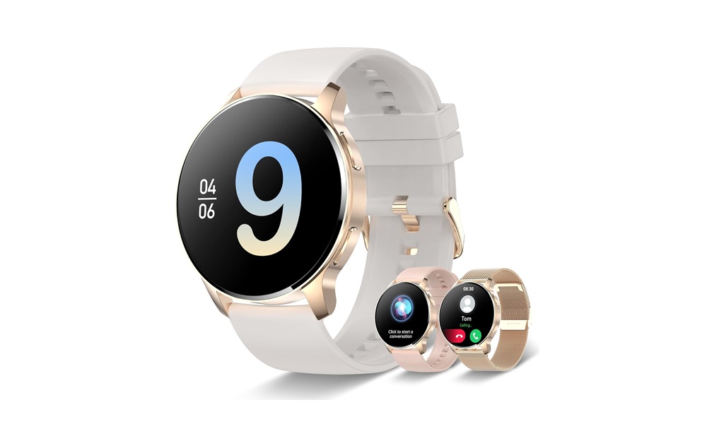 El reloj inteligente Iaret para mujeres presenta un diseño elegante con un marco de metal ultrafino y una pantalla táctil HD de 1.32 pulgadas. Ofrece funciones avanzadas como llamadas Bluetooth, notificaciones inteligentes y control de asistentes de voz.