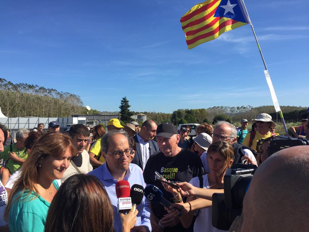 Quim Torra comparece junto a los manifestantes en Cataluña