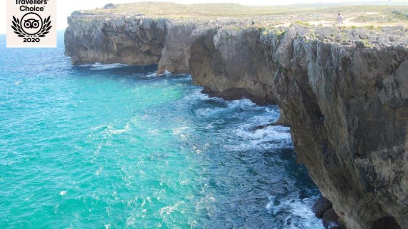 Y del sur, al norte. En territorio astur encontramos este acantilado, conocido como los Bufones de Pría. El oleaje ha favorecido que las rocas se vayan erosionando hasta formar "chimeneas". En ocasiones las olas rompen hasta a 20 metros de altura, lo que provoca que algunas de las playas que están alrededor "aparezcan y desaparezcan".