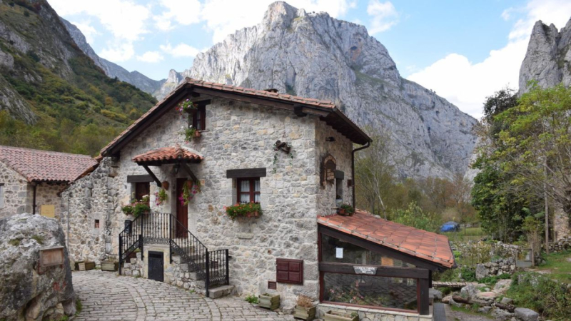 Bulnes, conocido por ser el último pueblo sin coches de Asturias, es una pequeña y pintoresca parroquia ubicada en el corazón del Parque Nacional de los Picos de Europa, en el concejo de Cabrales. Este pueblo, que forma parte de los 111 pueblos más bonitos de España, se distingue de otras aldeas de la zona por su remota ubicación. Con una población que apenas supera los 30 habitantes, este tranquilo lugar ofrece una experiencia realmente única al turista en medio de un impresionante entorno natural. Las casas de piedra y las callejuelas estrechas de Bulnes reflejan su carácter tradicional y a pesar de su tamaño reducido y su aislamiento, Bulnes es un destino muy apreciado por los montañeros, ya que sirve de punto de partida para explorar el famoso Pico Urriellu o Naranjo de Bulnes.