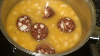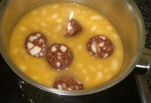 Judías blancas con butifarra negra.