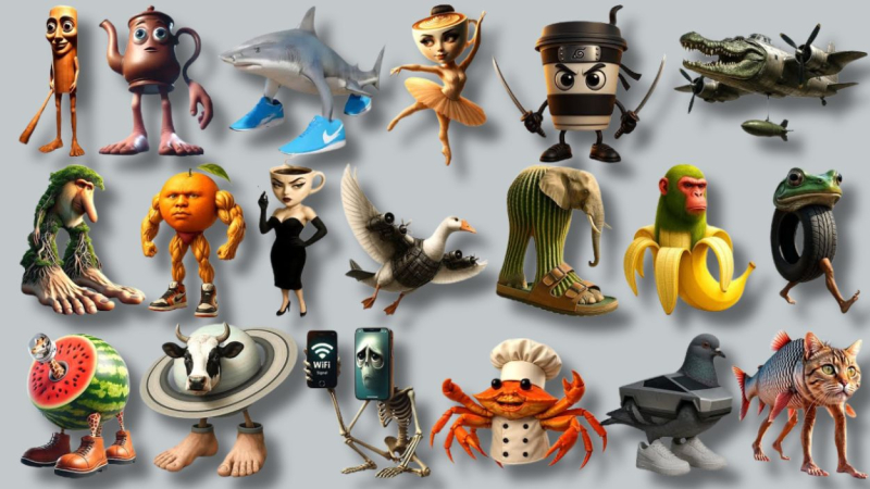 Los llamados Italian Brainrots son su versión más reconocible: personajes generados con inteligencia artificial que combinan rasgos humanos, animales y objetos en mezclas imposibles. Una tacita de café que baila ballet (Balerina Capuchina), un tiburón con zapatillas (Tralarelotralara), un medio mono medio plátano cantante (Chimpancini Bananini) o un cocodrilo combinado con un avión (Bombardilo Crocodilo) componen un universo tan absurdo como hipnótico.