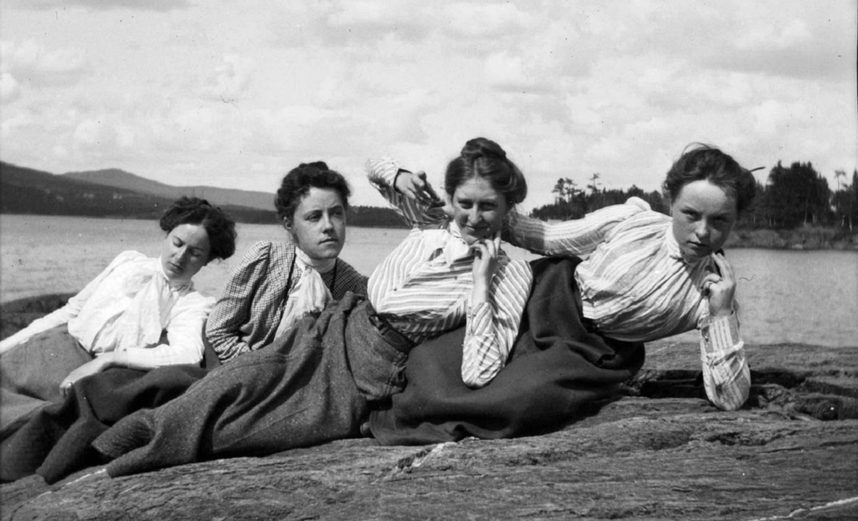 ¿Y qué es lo que tienen de singular? Sus protagonistas. Las fotografías de Parker Babb están repletas de mujeres que comen, que beben, que aman…vestidas de corsé, con sombrero o con falda larga. Las encontramos en retratos en grupo, con traje masculino, en un picnic, de paseo o simplemente disfrutando de su tiempo libre, en Camden (Maine). Estas imágenes, tomadas entre 1898 y 1901, documentan mucho más de lo que vemos. Nos sugieren el olor de la comida, la sensación de frío o calor, el sonido de las risas, el chapoteo del agua…