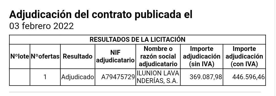 Toda la información sobre este contrato es de acceso público y puede accederse a ella a través de la plataforma mencionada. El concepto de la prestación es, para ser exactos, el “servicio de lavandería de ropa hospitalaria del Hospital Enfermera Isabel Zendal y sus locales adscritos”.