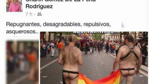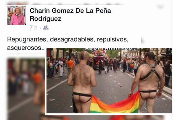 “No soy homófoba”, ha corrido a explicarse Charín Gómez de la Peña, concejala de Servicios Sociales de Badajoz. Y aún más corrió a borrar un post que había colocado en su página de Facebook. Pero ya era tarde. Su pensamiento sobre los gays, al menos sobre los que se habían manifestado en la marcha del Orgullo, había trascendido:
