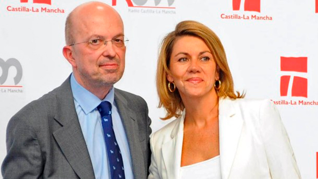 Nacho Villa con María Dolores de Cospedal el día que se hizo cargo de la televisión de Castilla-La Mancha.