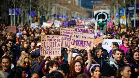 En Barcelona, miles de personas se han concentrado en los Jardinets de Gràcia para marchar hasta el Arc de Triomf bajo el lema “Frente al imperialismo colonial y fascista, lucha feminista”, con un enfoque claro sobre los conflictos bélicos recientes y el impacto del intervencionismo internacional en la vida de mujeres y niñas. La consigna más escuchada ha sido “Ni una menos, ni aquí ni en Irán”, uniendo la lucha local con la solidaridad internacional. Paralelamente, otra marcha abolicionista de la prostitución ha partido de la Plaça Catalunya, siendo la primera vez que Barcelona ha acogido dos manifestaciones distintas el mismo 8M.