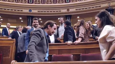 Una celebración que siguió después de que Batet levantara la sesión. No obstante, gracias a un vídeo que ha colgado Podemos en su página oficial de apenas ocho minutos, ha trascendido a los medios de comunicación cómo fue el post debate de los morados. Un festejo lleno de besos, abrazos y también llantos, de felicidad. Lágrimas como las de Iglesias y Echenique, o las de Irene Montero y Aina Vidal, pero también las de los numerosos asesores de los dirigentes de Unidas Podemos. “Hoy sí que es un día para llorar”, comentaba la flamante ministra de Igualdad.