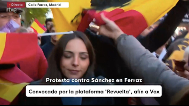 La cobertura informativa de una concentración frente a la sede del PSOE en Madrid ha terminado hoy con un episodio de acoso contra una periodista de Televisión Española. Laura Pavía, reportera de TVE, ha sido increpada e insultada por un grupo de manifestantes mientras intentaba informar en directo sobre la movilización convocada por jóvenes afines a Vox.
