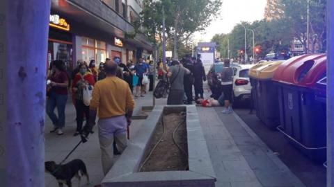 En el lugar de los hechos, una ambulancia del Samur ha atendido al herido, tumbado sobre la acera, mientras cinco vehículos de la Policía Nacional obligaban a las personas a circular evitando su concentración, asegura la televisión pública de Madrid.